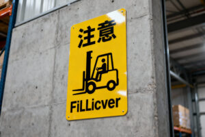 耐久性・加工性に優れた塩ビ(PVC)素材を使った標識は、工場や建設現場、施設内など、あらゆる場所で活躍しています。
